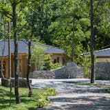 車で坂を登り駐車場へ。左側にはテラスハウス棟が見えてきます。森林に囲まれていて、静かで凛とした雰囲気。